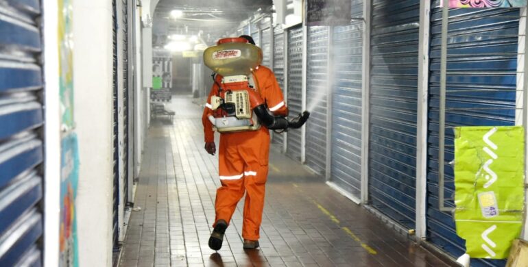 Emacruz fue la encargada de realizar la limpieza, fumigación y desinfección, tanto al interior y exterior del centro de abastecimiento.