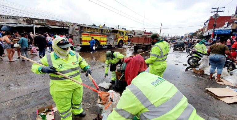 La Empresa Municipal de Aseo Urbano de Santa Cruz (Emacruz), en una tarea coordinada con diferentes reparticiones del Gobierno Municipal se hizo presente para coadyuvar en las tareas de sofocar el incendio en el mercado Mutualista, que inició el domingo antes de la medianoche. Varias brigadas de trabajo, dependientes del operador privado y de Emacruz, llegaron hasta el centro de abastecimiento para prestar colaboración inmediata por instrucción del alcalde, Jhonny Fernández.