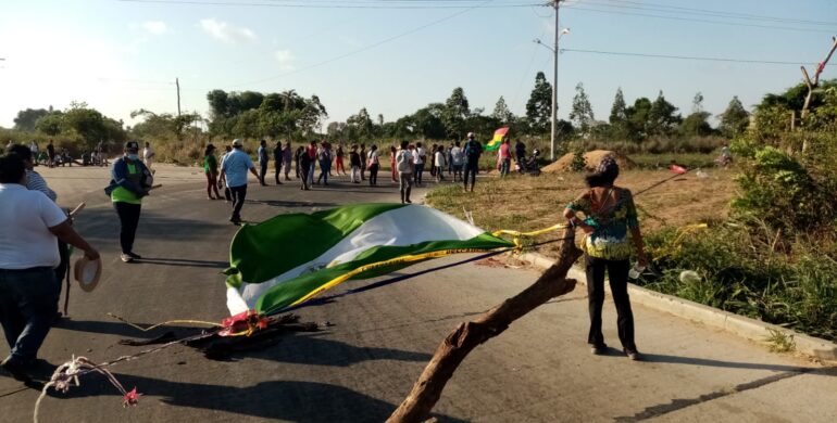 El grupo de dirigentes del Distrito 14 que inició la medida de presión en el ingreso al vertedero municipal está en contra del paro indefinido que vive el departamento cruceño y solicitan que se levante la medida.