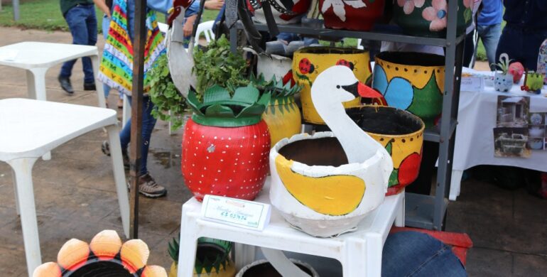 Asimismo, Martha Soto, mujer emprendedora y artesana que transforma llantas en hermosas macetas, estuvo presente con todos sus productos que realiza, exponiendo su arte ante los visitantes.